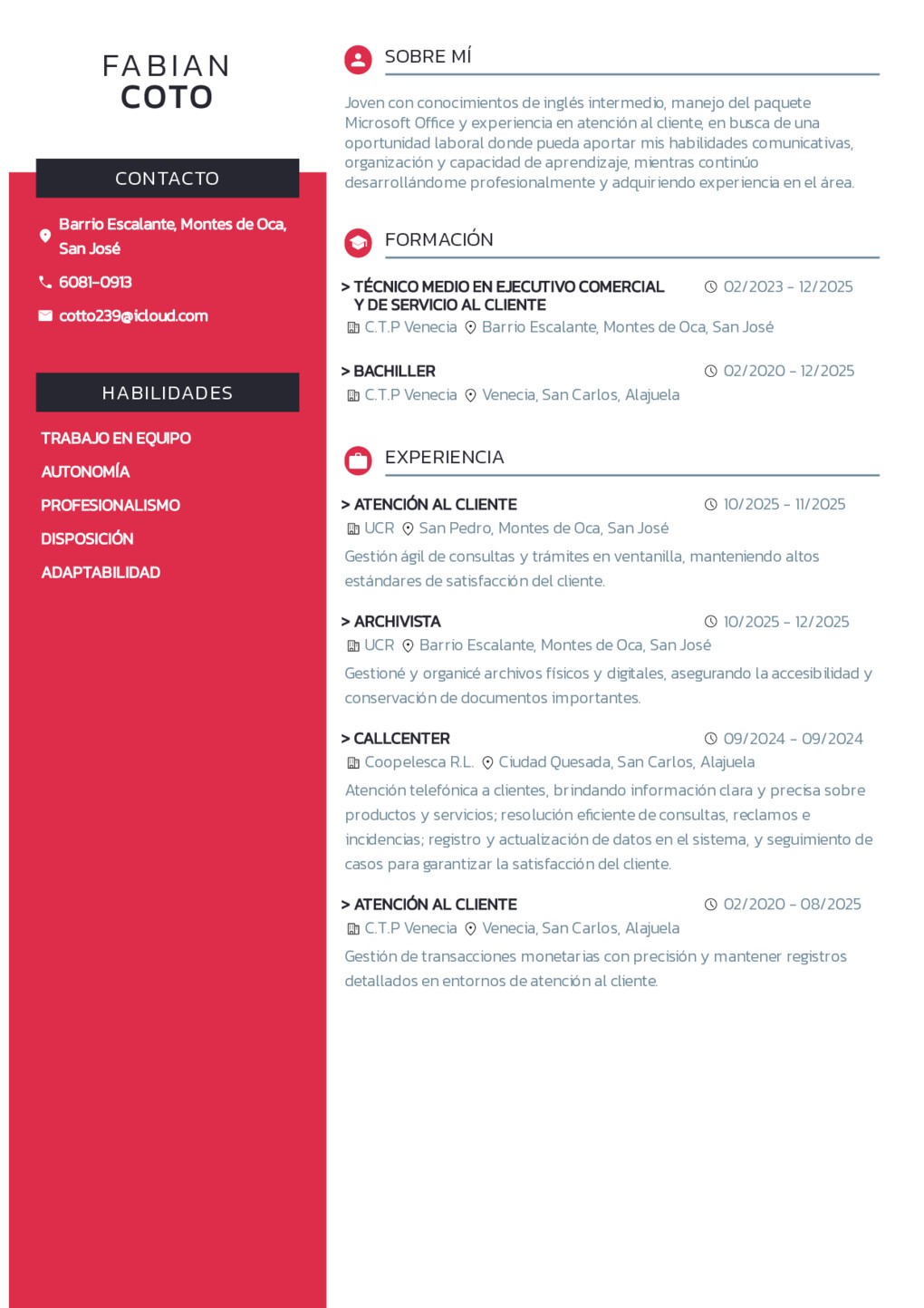Crea un curriculum en Barrio Escalante, Montes de Oca, San José