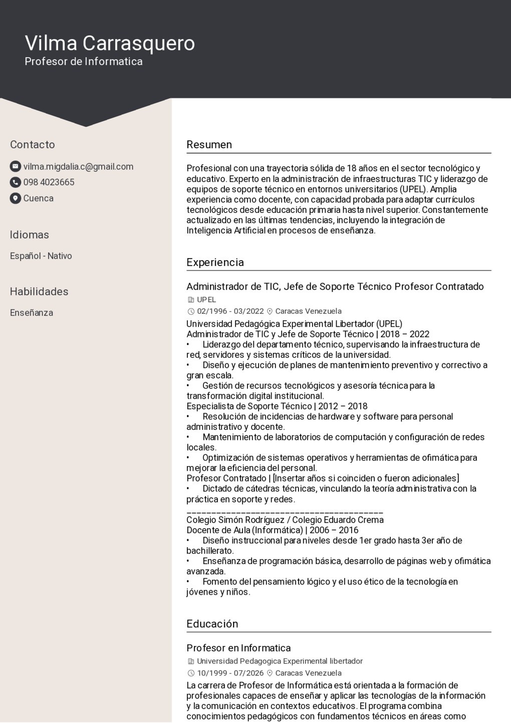 Crea un curriculum para Profesor de Informatica en Cuenca