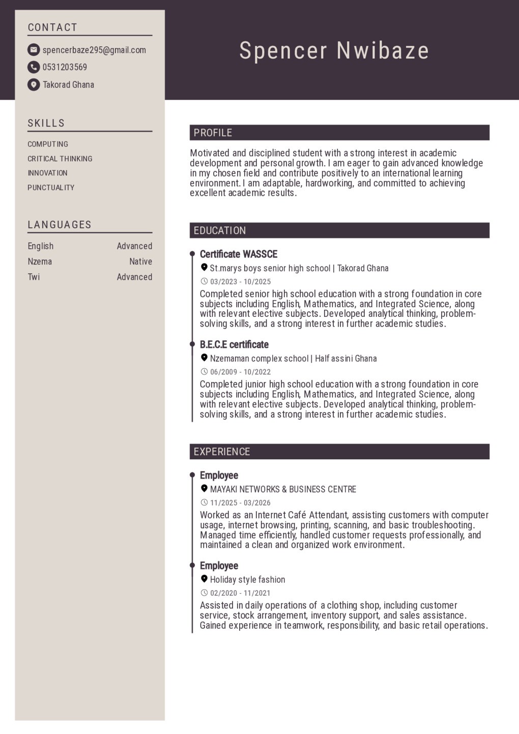 Using the online builder, select a template and fill in your CV information. Contact info, education, experience, skills, and languages. Navigate through steps and download anytime.